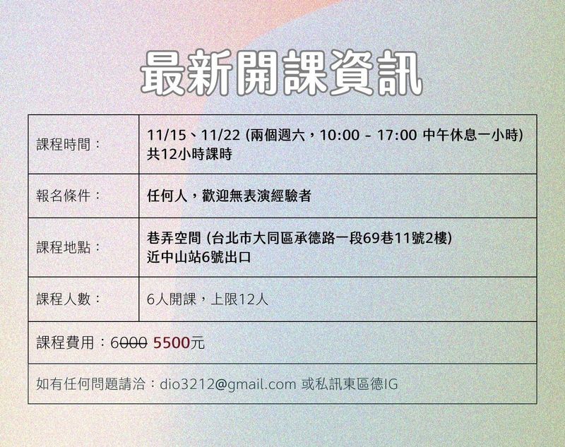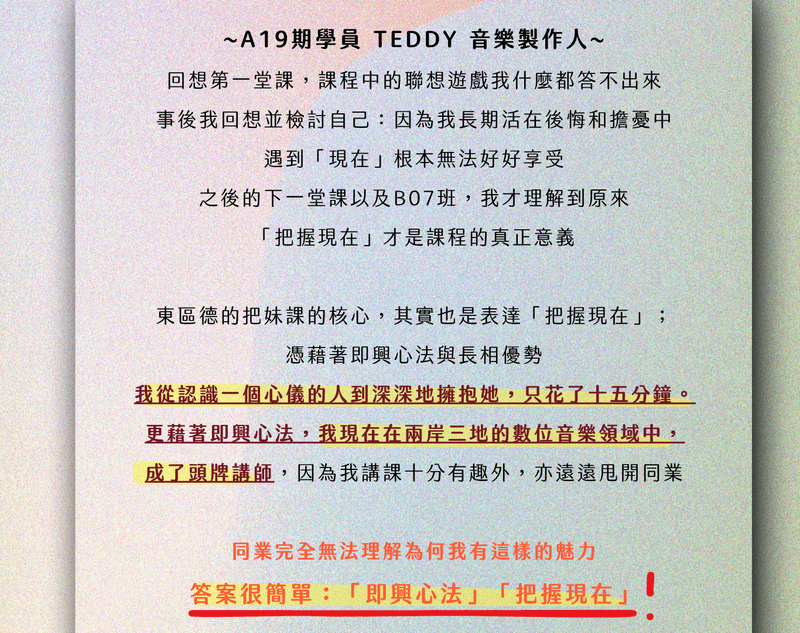 東區德即興表演初階班 Level A 「體驗式教學 - 輕鬆學即興力」(A21 現正招生中)
