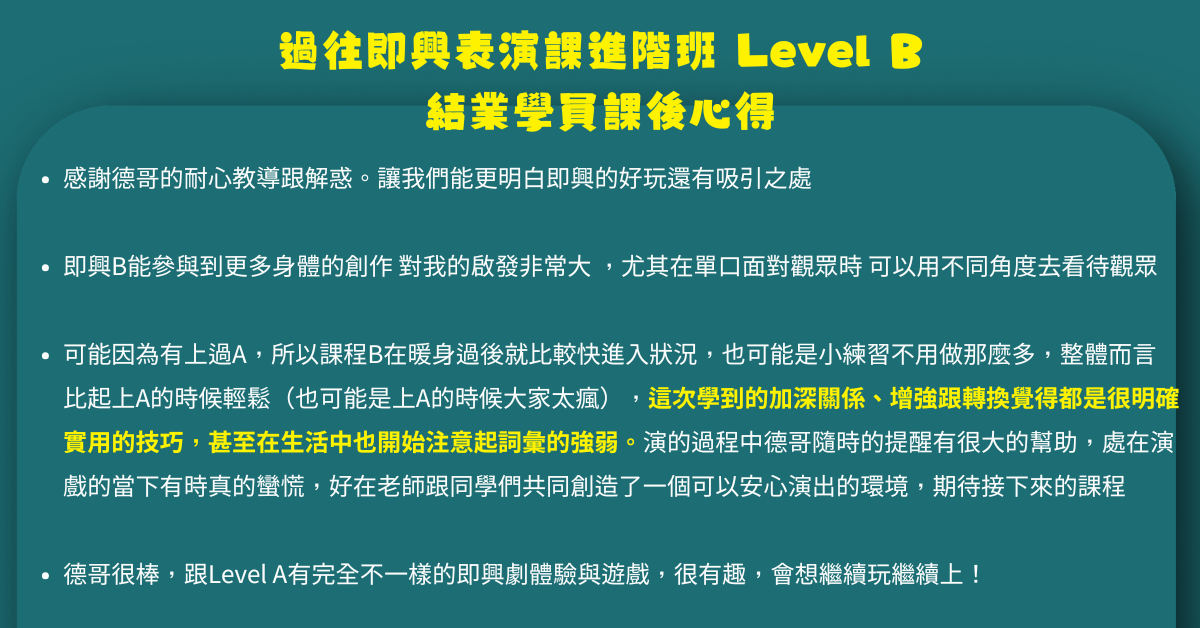 東區德即興表演進階班 Level B(B08 圓滿結業)