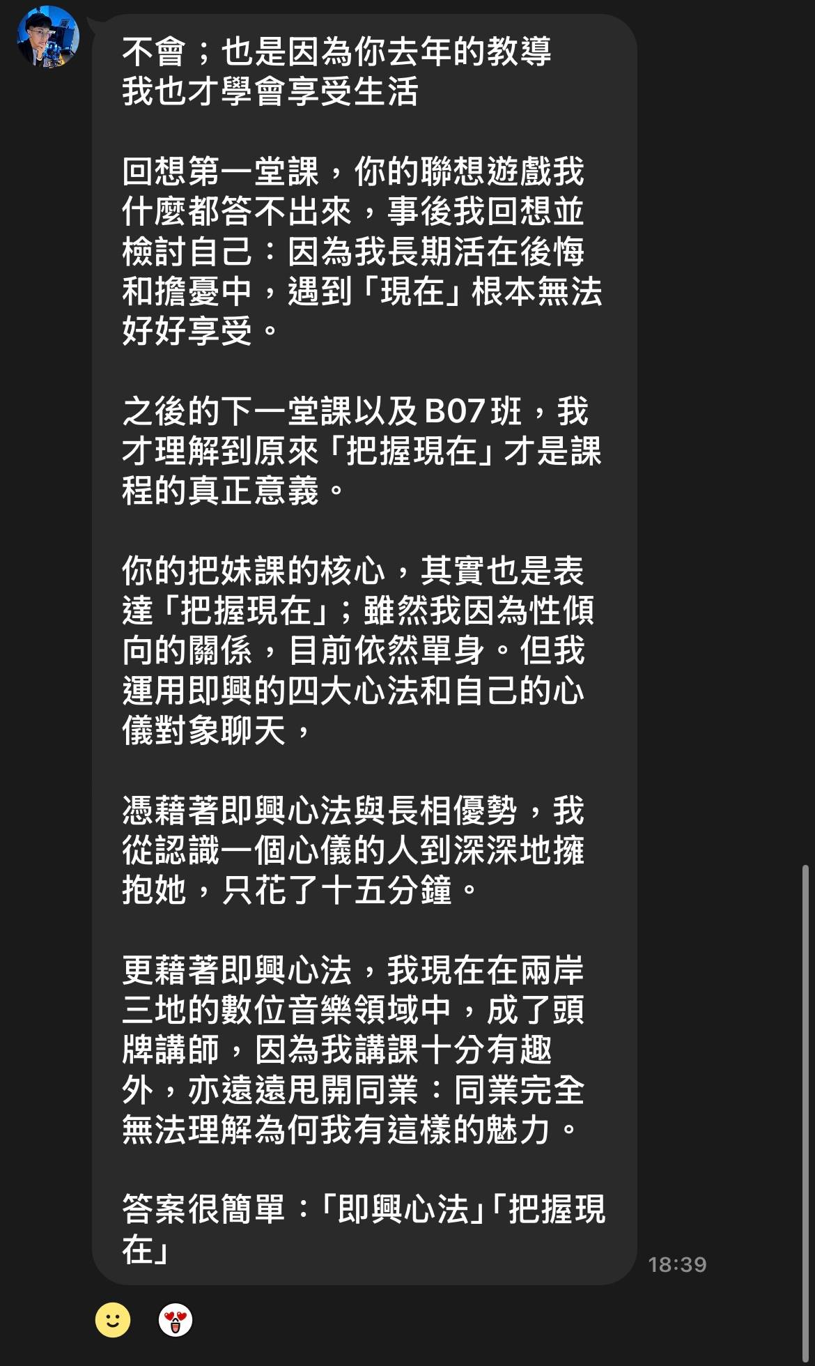 11月這班即興課,他幫我推薦了幾個朋友來上課